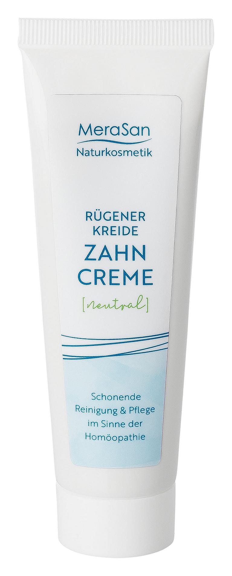 Die Rügener Kreide MeraSan Zahncreme NEUTRAL pflegt Ihre Zähne, ohne den Zahnschmelz anzugreifen. Natürliche Mineralstoffe und Spurenelemente fördern eine gesunde Mundflora und sind besonders für empfindliches und entzündetes Zahnfleisch geeignet. Der natürliche Fluoridgehalt der Rügener Kreide hilft dabei, schädliche Zahnbeläge zu entfernen. Die Zahncreme entspricht den Anforderungen der Homöopathie – ohne Menthol und ätherische Öle. Manufakturarbeit aus Deutschland.