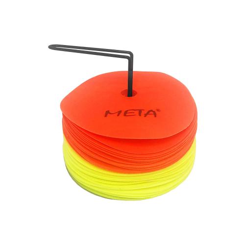 Das Markierungsset aus rutschfestem Material. Es ist sehr praktisch für das Training auf Kunstrasen und in der Turnhalle. Das Set enthält 24 Marker in zwei verschiedenen Farben (12 in Gelb und 12 in Orange). Das Set enthält einen speziellen Ständer für den einfachen Transport.