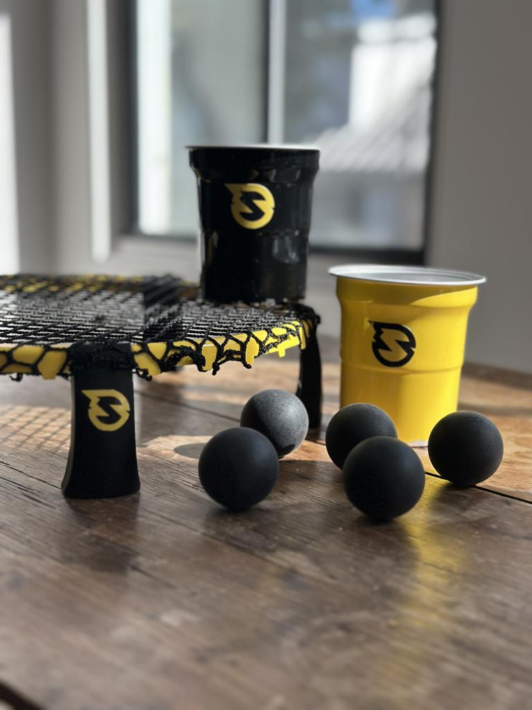 Die Spieler müssen so viele Bälle wie möglich in den Becher ihres Gegners versenken und dabei jeden Ball vom Netz in der Mitte abprallen lassen.