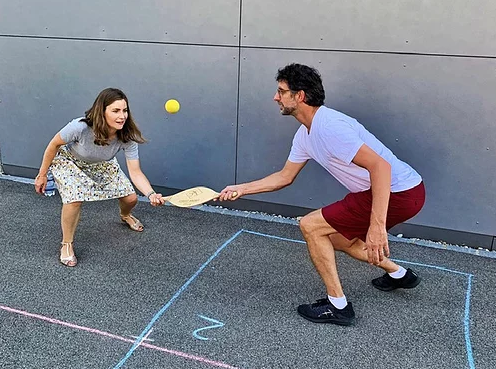 The team racket was developed for game forms and exercises for two and it supports the improvement of team spirit, cooperation and motorskills. In addition, it is a great instrument to support the correct movement for people with a physical or mental handicap.